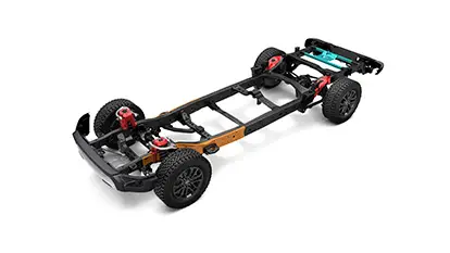 Ranger Raptor has a reinforced chassis. New shock tower mounts, 33-inch tires, unique upper and lower control arms, and a Watt’s link equipped coil-spring rear suspension mean this Raptor is the toughest and most capable Ranger Raptor yet.